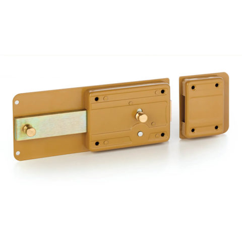 Night latch rim lock is available with fixed or loose cylinder and is supplied with strike (counterpart) and fixing screws.